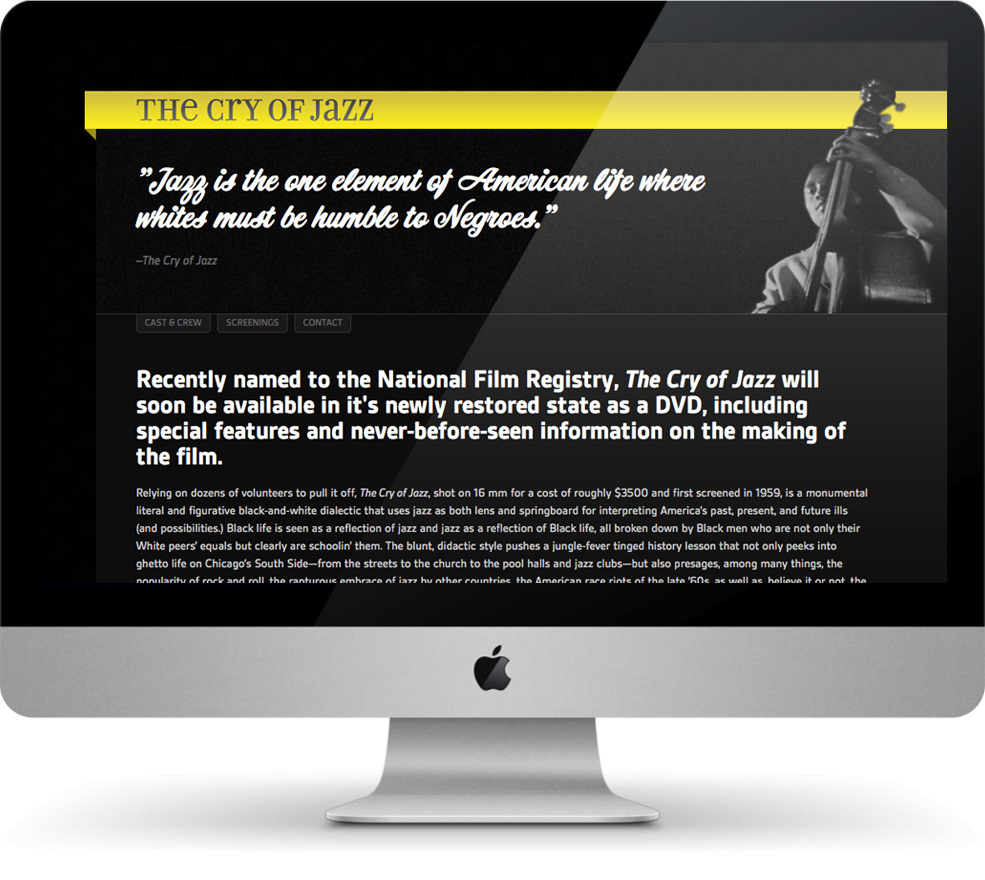 The Cry of Jazz is a side project that I have been working on for many years. The core of the project is re-releasing a film from 1958 which has been remastered and expanded with additional content. This website was created to accompany the project and eventually be expanded to included additional content and a digital download section for the film.